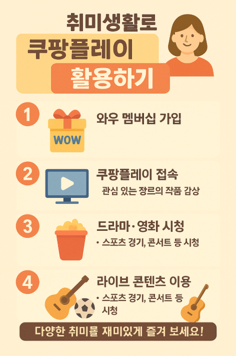 취미 활동과 쿠팡플레이를 연결해 활용한다면 평소 시도하지 못했던 새로운 장르에 도전하면서 삶의 폭을 넓힐 수 있을 것입니다.