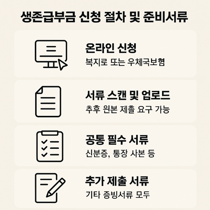 생존부금은 단순 지원금이 아닌, 다양한 조건을 종합적으로 고려하는 생존 지원 체계로 이해하고, 사전에 자산과 보험 정보를 점검한 뒤 신청하는 것이 유리합니다.