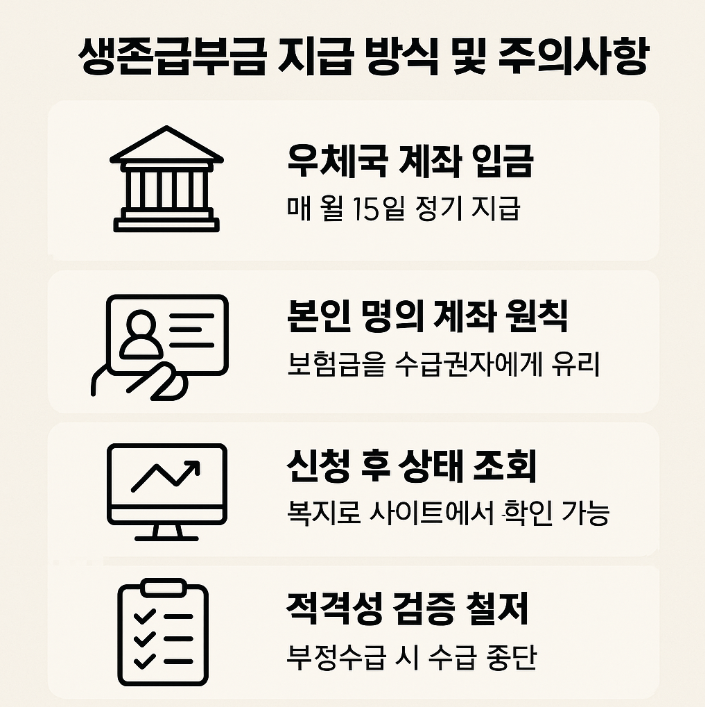 생존부금은 일회성 지원이 아닌 지속적 보장을 위한 제도이기 때문에, 정기적인 정보 갱신과 우체국 보험 연계 조회 시스템을 통한 자격 확인이 중요합니다.