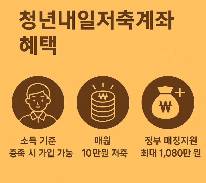 - 월 10만 원 저축 시 정부가 최대 1,080만 원 매칭