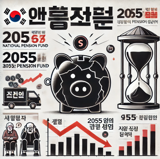 2023년 발표된 제5차 재정추계에 따르면, 현재 수준의 보험료율과 급여율이 유지될 경우 국민연금 기금은 2041년부터 적자로 전환되며, 2055년 완전히 소진될 것으로 예상됩니다.